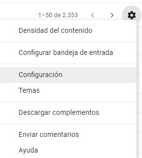 • En la barra superior de Gmail tenemos que localizar el icono del engranaje que se encuentra arriba a la derecha