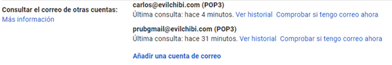 En el apartado “consultar el correo de otras cuentas:” aparece un link sobre el texto “Añadir una cuenta de correo”
