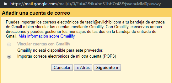 Seleccionamos el punto en * Importar correos electrónicos de mi otra cuenta (POP3)