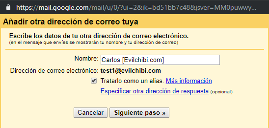 “Sí, quiero poder enviar mensajes como test1@sudominio.cl”