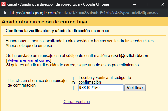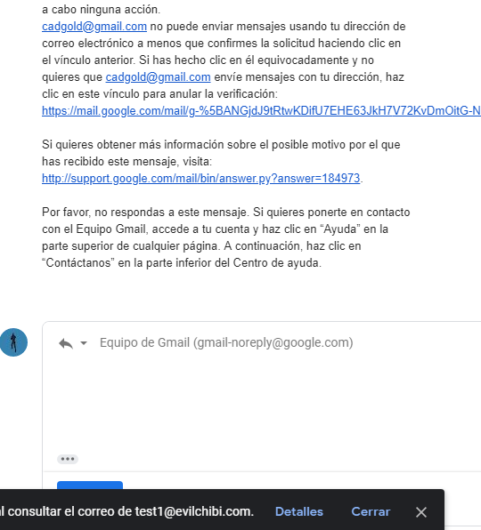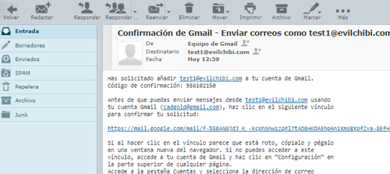 “Confirmación de Gmail – Enviar correos como test1@sudominio.cl” puede que aparezca como leído el mensaje